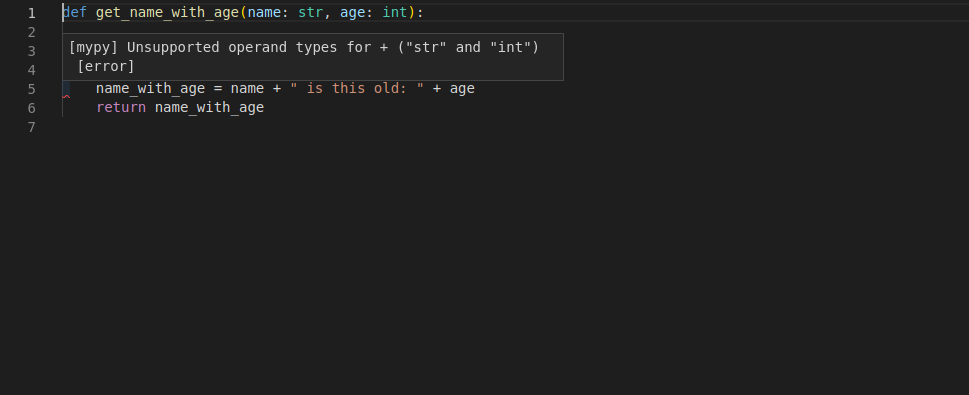 Aber jetzt stellen Sie sich vor, Sie sind wieder mitten in der Erstellung dieser Funktion, aber mit Typhinweisen.