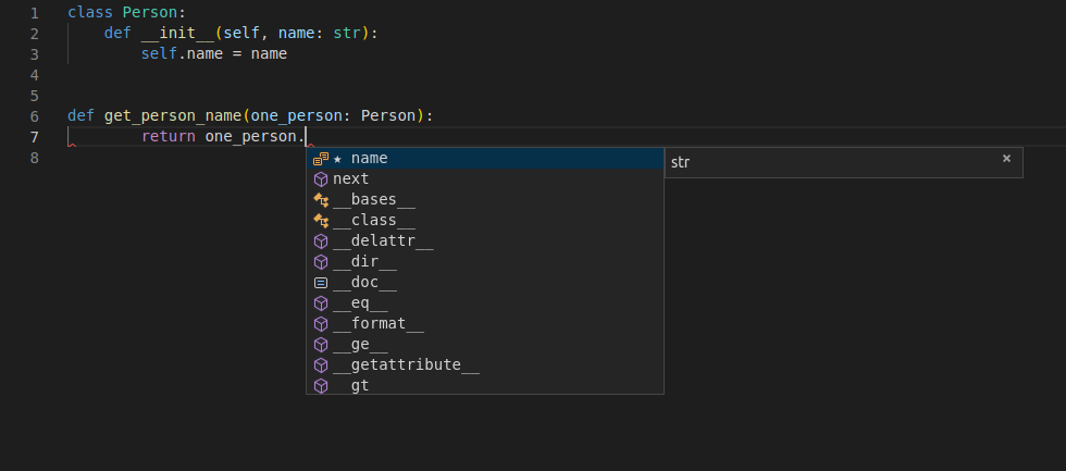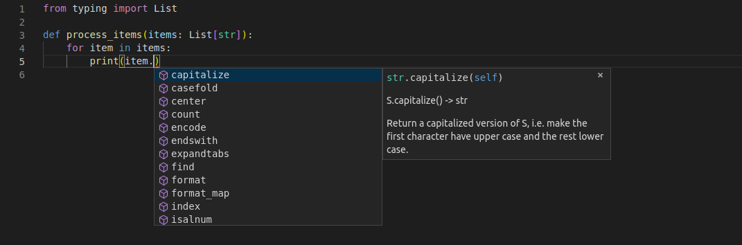 Und trotzdem weiß der Editor, dass es sich um ein str handelt, und bietet entsprechende Unterstützung.